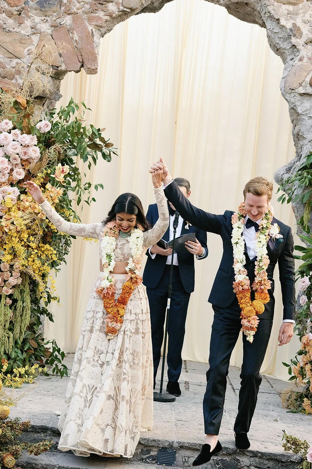From the start of the Halloween welcome dinner, we knew Bhava and Adam’s celebration promised to deliver elevated elegance and infectious fun. Wedding guests traveled to Our Habitas San Miguel for an all-inclusive hotel experience, starting with a traditional Indian Sangeet celebration. Guests dressed in silk sarees and classic sherwani, ready to step into the sangeet, traditional pre-wedding "music night" that felt anything but conventional.